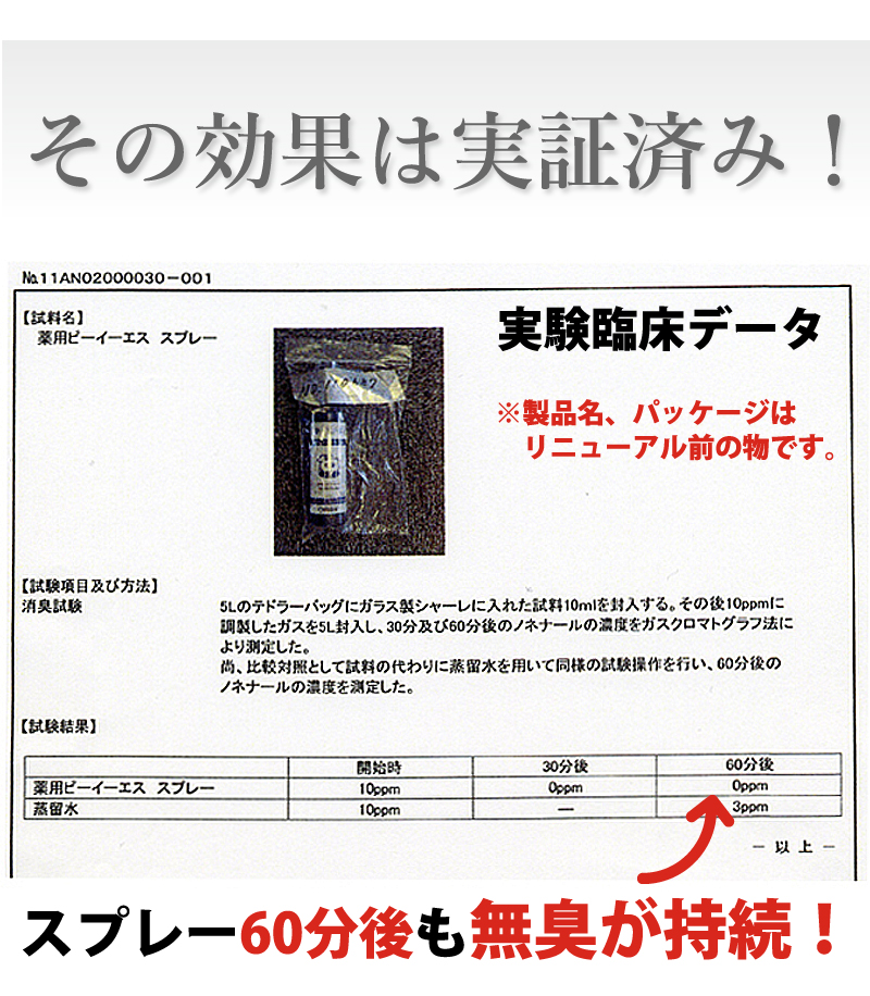 効果実証済み スプレー60分後も無臭が持続している事を確認